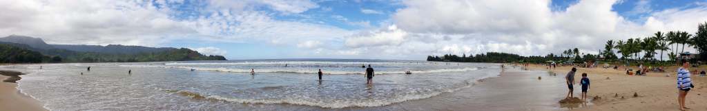 Our last day we had lunch at Princeville Resort, formerly the St Regis. We went there because our neighbors told us the view was spectacular and it was. The hotel is on top of a cliff that overlooks Hanalei Bay. The view is pure Hawaii, with the blue ocean, Hanalei beach in the distance, the mountains in the background and surfers catching waves below the restaurant.