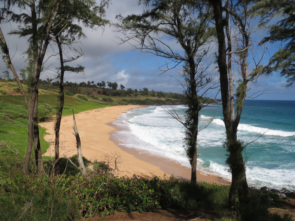 The picture below is of one of the Ka Paa bays we saw on our hike. The bay is so large that there are people on the beach but they look like specks, and surfers in the water.