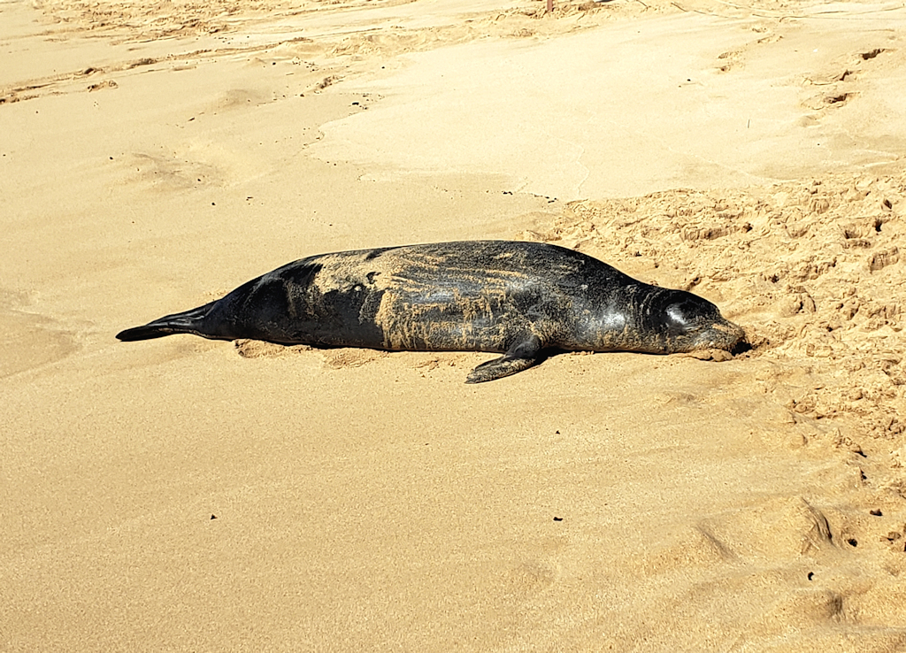 We went to a beach on the south end of the island and encountered a sleeping Monk Seal.