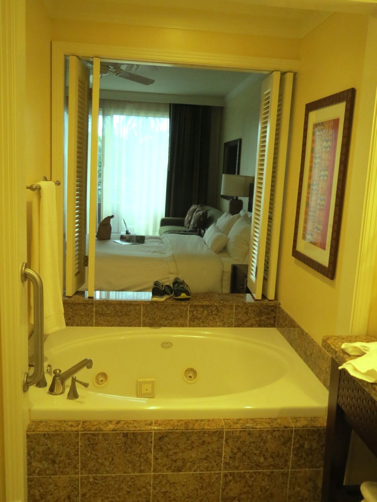 The property was beautiful. It had a store, restaurants, pools, spa, and a gym. The room was large. It had a jacuzzi tub, large screen TV, full kitchen and lanai. The resort was located on a cliff but there was a trail leading to the ocean and a small river.