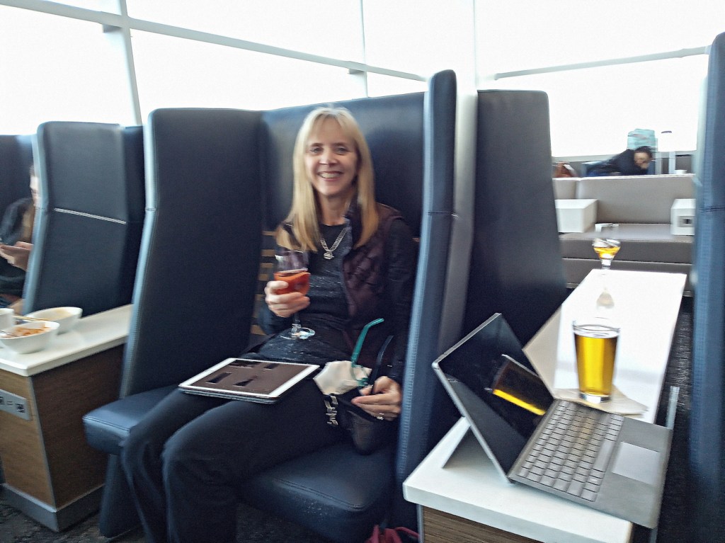 We were over three hours early for the flight. After we cleared security Karen noticed a Delta lounge so we paid the $29 fee rather than hangout in the busy airport. It was worth it. We had drinks, food and a place to stretch out until we had to board the plane.