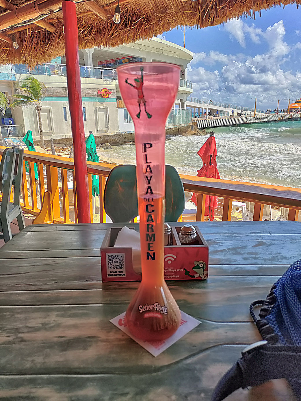 It was almost of the end of my vacation so I decided to stop and have a beer at Senor Frogs. I got a nice table on the railing with a view of the ocean. I don’t usually stop at Senor Frogs and I didn’t look at the menu. The server asked me if I want a small, medium or large beer. I thought medium sounded like a good compromise. The server brought me out a 32 oz beer that cost $10 US.