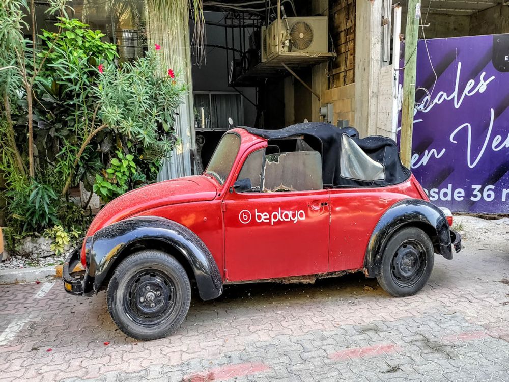 The Windham has a 1950 something Ford Woody. Freaky Tiki has a cool VW Bug Dune Buggy. Chela de Playa has a VW bus that converts to a bar. Be Playa has an old convertible VW that seems to need restoration.