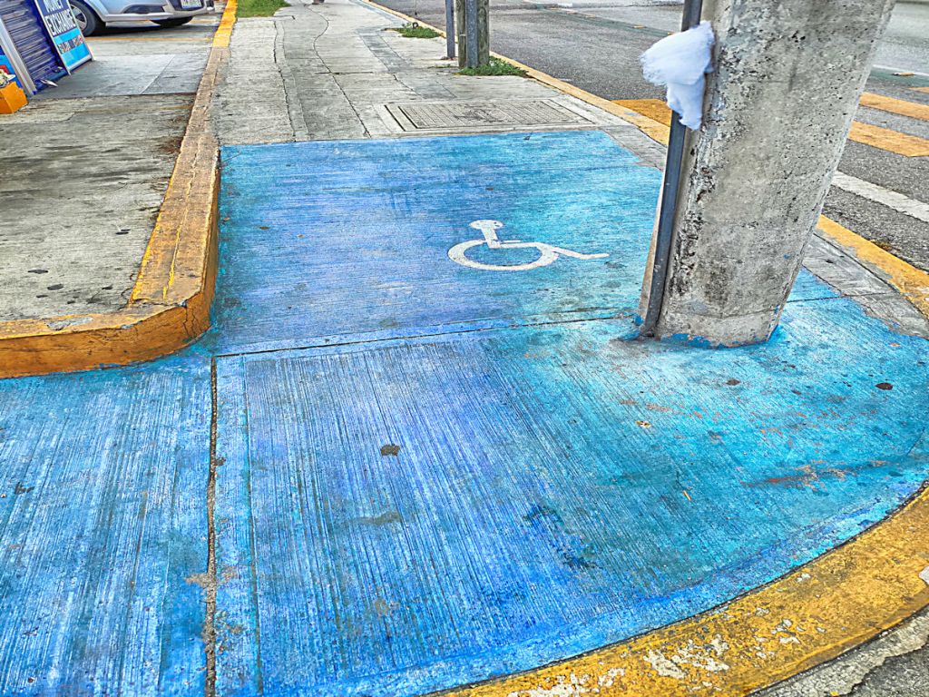 I noticed a wheelchair accessible curb when I was walking to the Mega but when I got to the other end there was the normal foot high curb so I am not sure where the poor person is supposed to go.