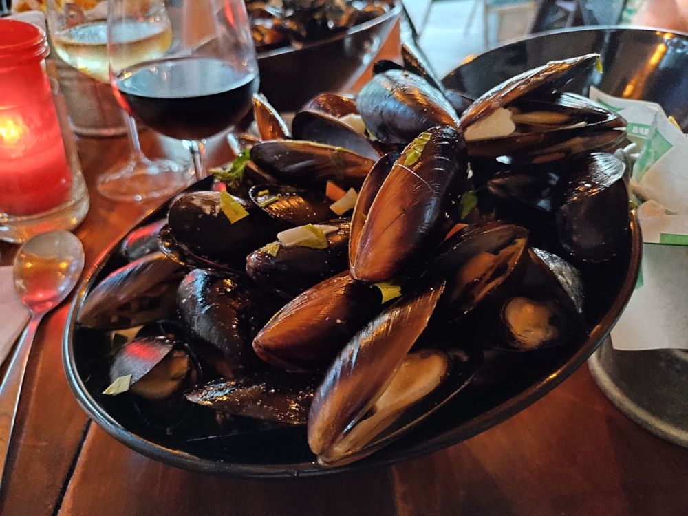 Our French dive master recommended Chez Papa. It is a French restaurant and they have a mussel and fries special on Tuesdays and Thursdays. It was more mussels than we could eat.