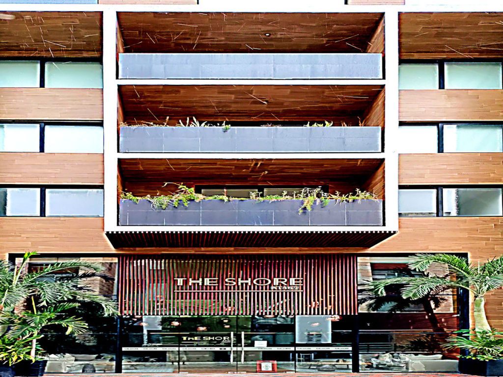 My first two and a half weeks were spent at The Shore. It is a newer condo on 1st Ave and calle 44. I had a studio so my room was a little small but it suited my needs. The roof top pool was just okay. I liked the pool area at La Resedencia better. The gym at The Shore was very nice. The location of the hotel was good. It was off 5th Ave so the neighborhood was quiet. One of the nicest things about the shore is there was a Mini Super across the street so I didn.t have to go far for water, beer, etc.